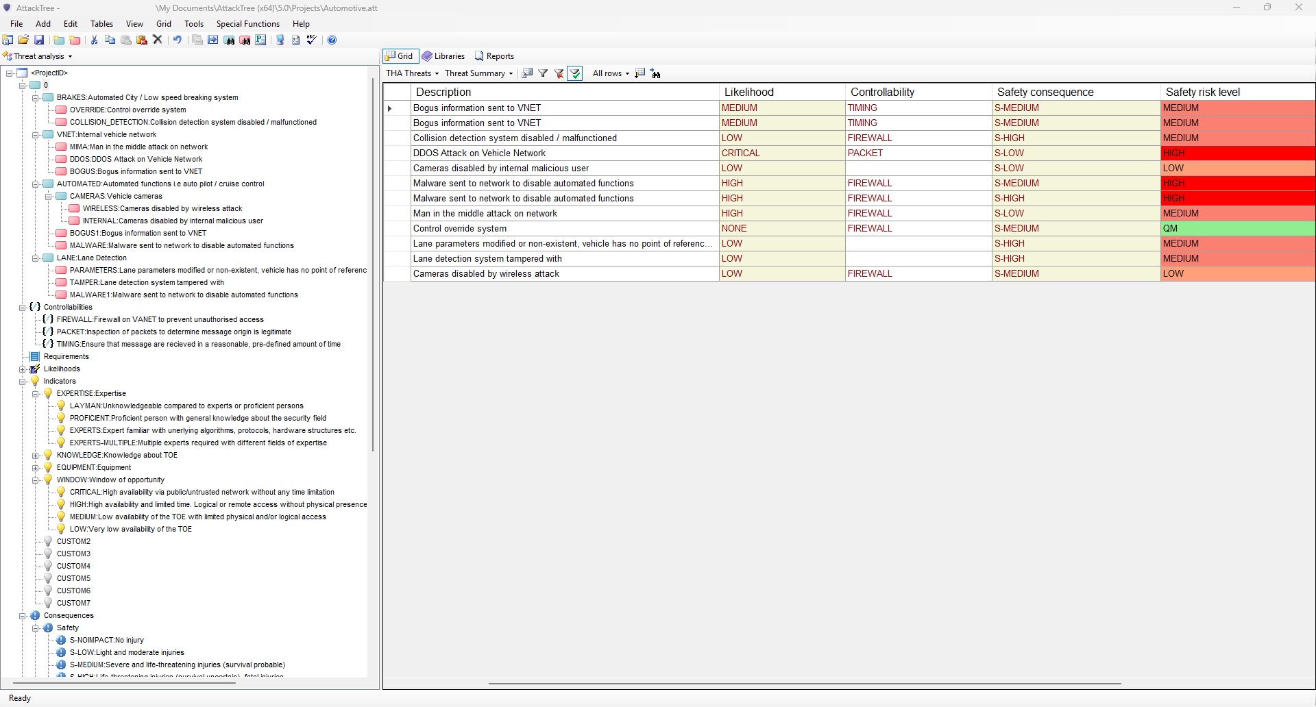 Softwaregestützte Sicherheitsrisikoanalyse mit strukturierter Bewertung von Bedrohungen hinsichtlich Wahrscheinlichkeit, Kontrollierbarkeit und sicherheitsrelevanter Auswirkungen