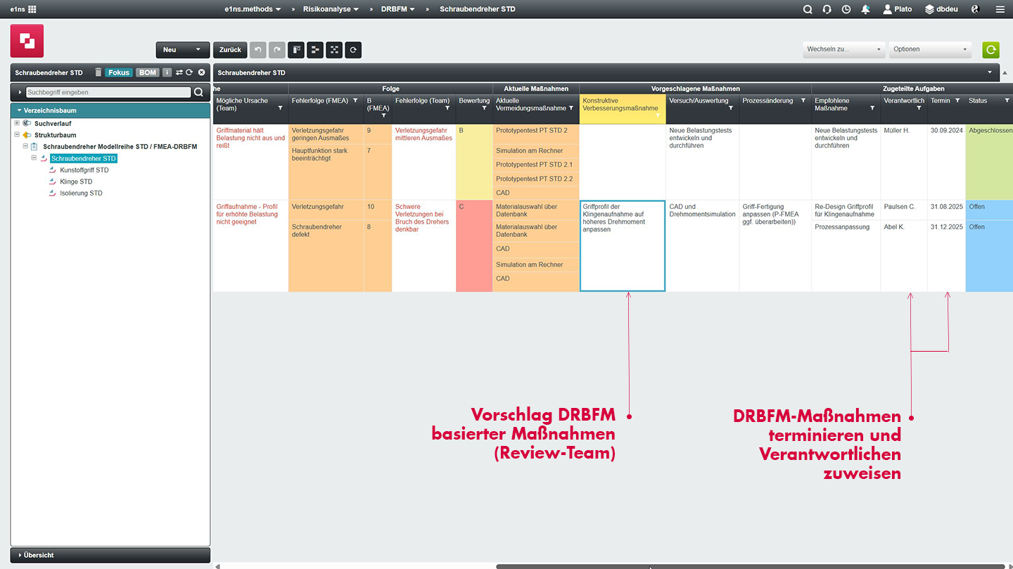 DRBFM unterstützt die Ableitung, Terminierung und Verantwortungszuweisung von Maßnahmen