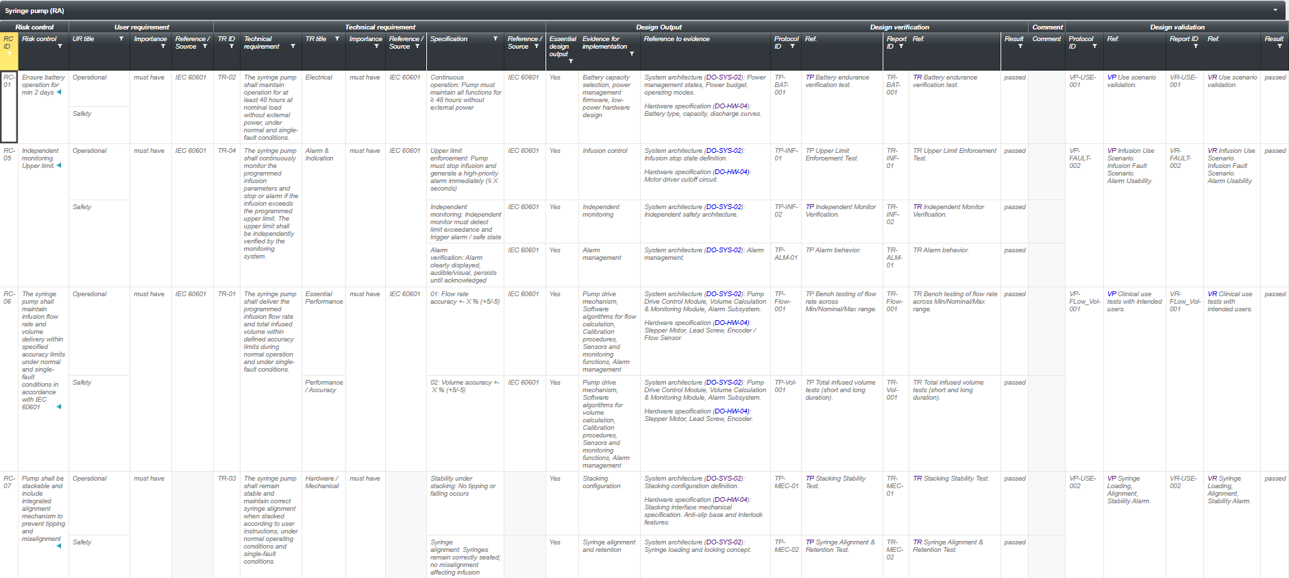 • Zentrale Datenbasis: Alle Risiken, Gefährdungen und Maßnahmen werden einheitlich verwaltet und sind jederzeit aktuell. Verknüpfung mit Design-Inputs/-Outputs/-Verifikation/-Validierung gewährleisten die Nachvollziehbarkeit.